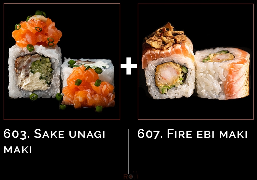 603. Sake unagi maki + 607. Fire ebi maki