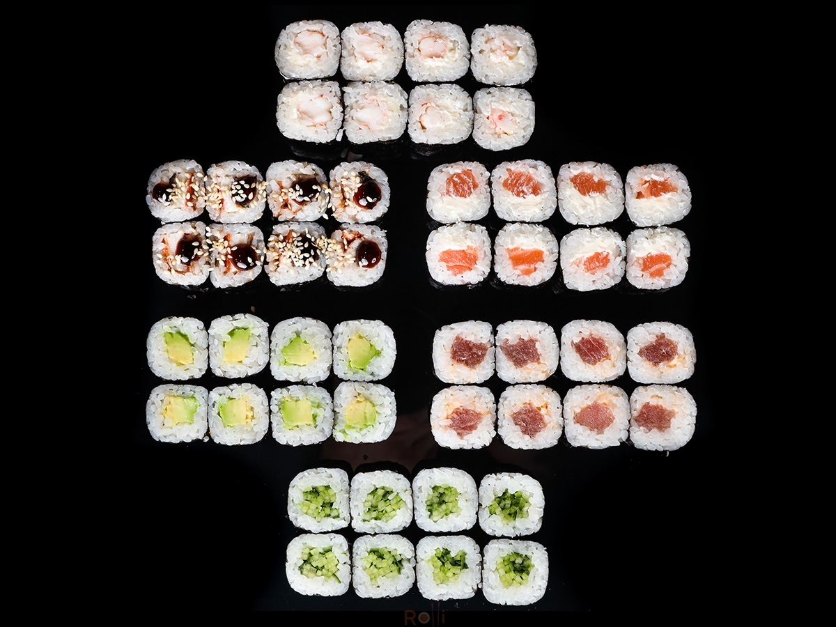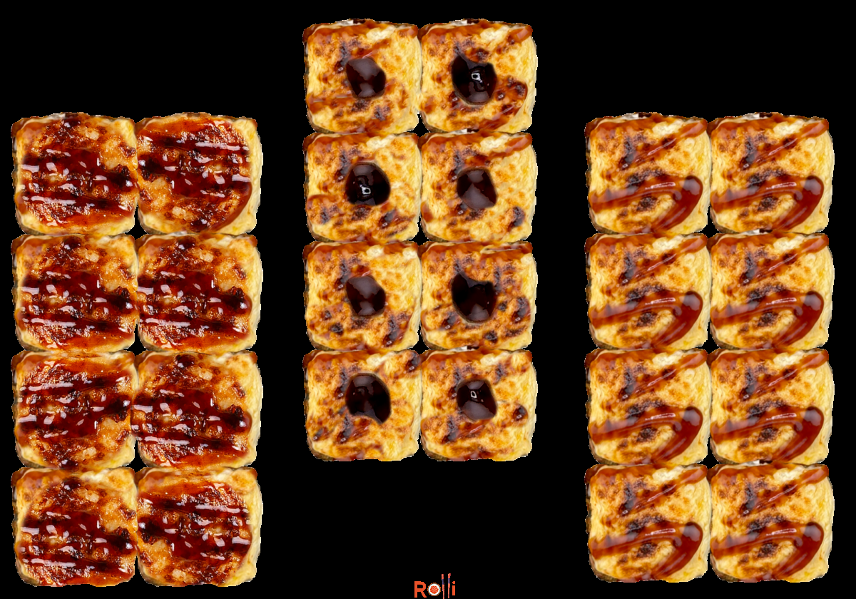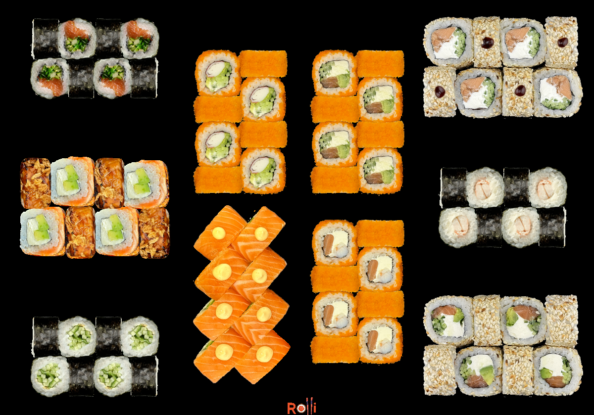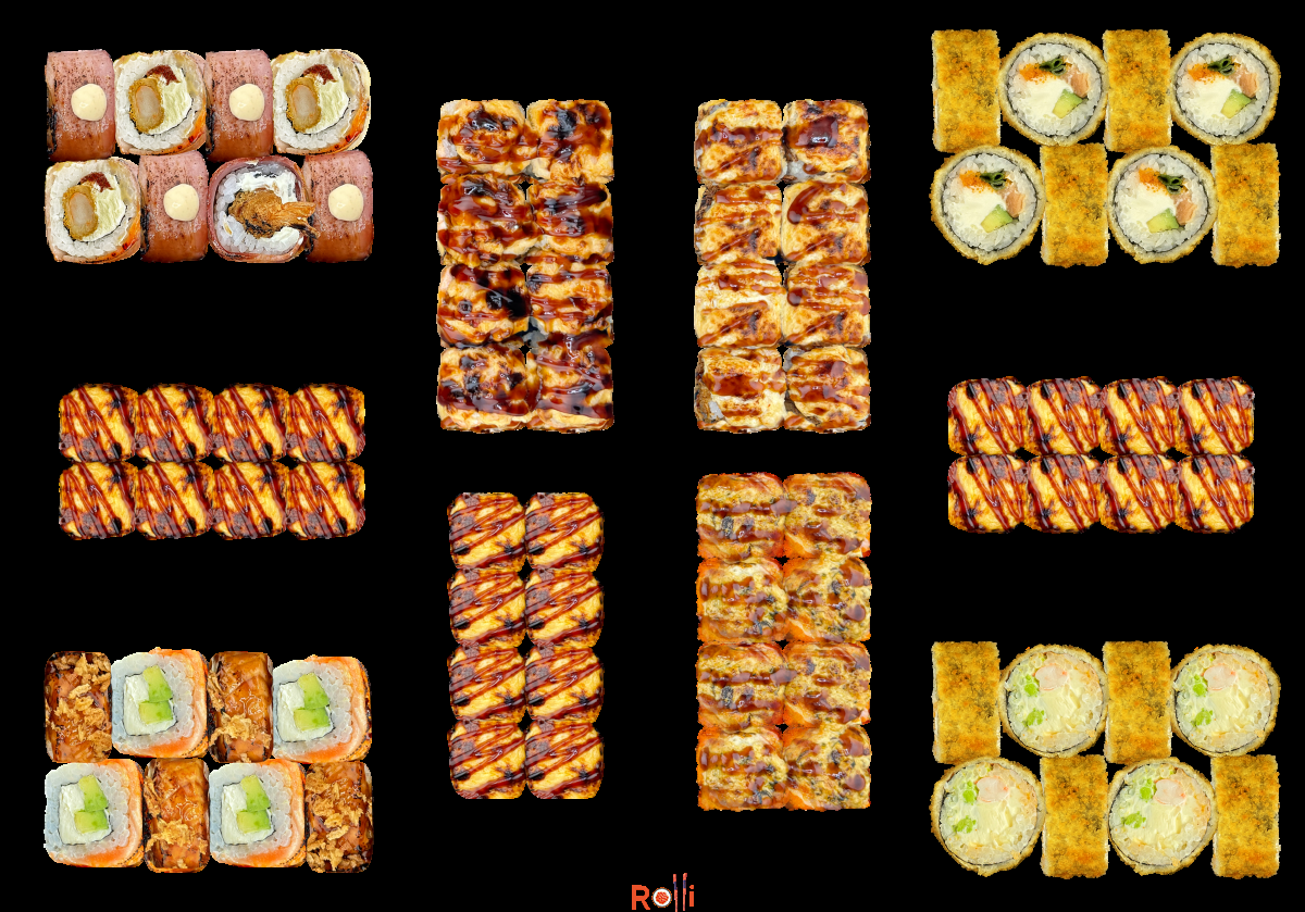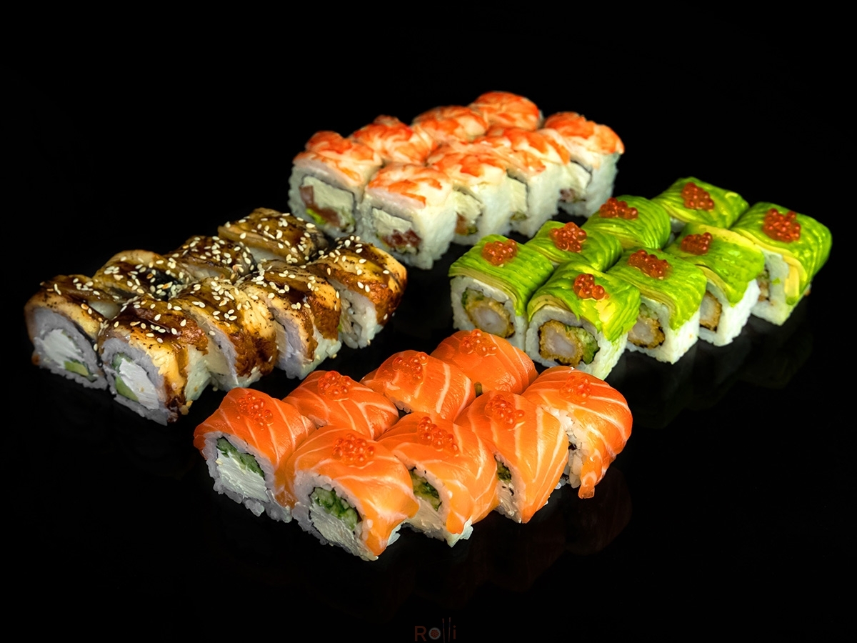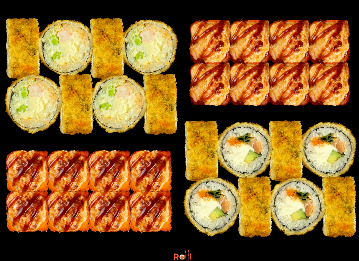 Cepts Halumi siers, saldie kartupeļi frī ar parmezānu, vistas spārni, Fire philadelphia maki, cepts rolls ar tīģergarnelem, tomātu un siera mērci.